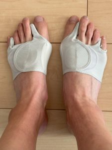 どちらもまだ目に見えて矯正されているような感覚はありませんが、足の指が内側に倒れるのを支えてくれるのと、足囲が広がるのをぐ~っと押さえてくれている実感はあります。