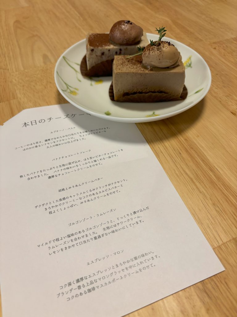 まったく重くなく、かといってチーズケーキの食べ応えもしっかりとあるおいしい2品でした。